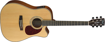 Cort MR710F, Venetian cutaway for smooth high fret access and is implemented with Fishman electronics. Buy this Guitar online at minimum price on Devmusical.com